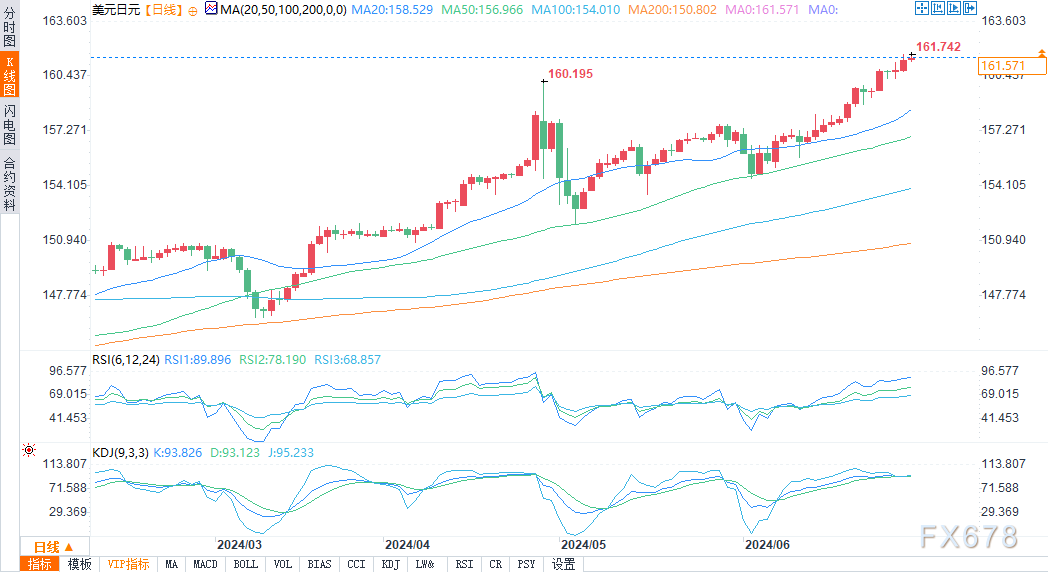 北京时间00:03,欧元/美元报1.0733/34,跌幅0.06%。英镑/美元报1.2671/72,涨幅0.17%。美元/日元报161.558/570,涨幅0.09%。