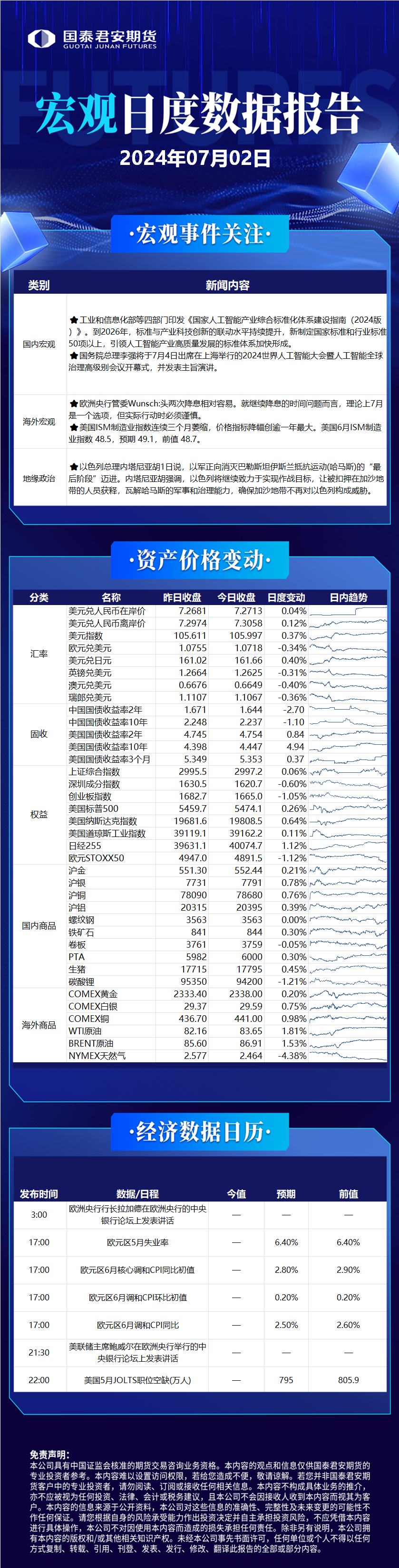今日重点关注:棕榈油、集运指数(欧线)、生猪。鲍威尔称通胀取得了相当大的进展,再度提振市场对降息的乐观情绪