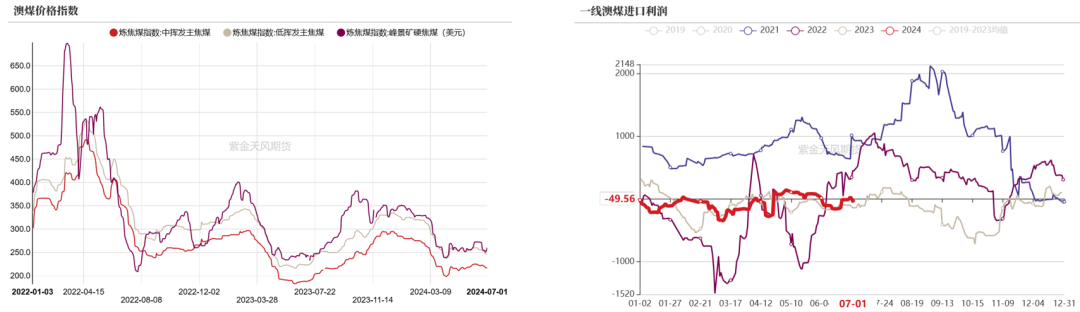 铁水及高炉开工仍在高位,煤焦刚需较好,但钢厂目前在盈亏平衡附近,且淡季有一定出货压力,七月或增加检修,原料需求端承压。