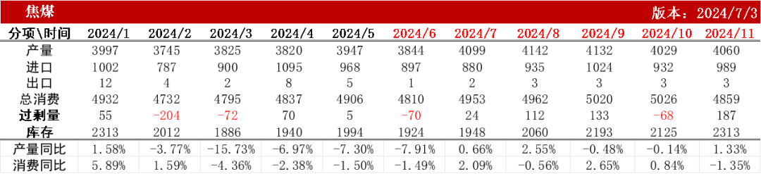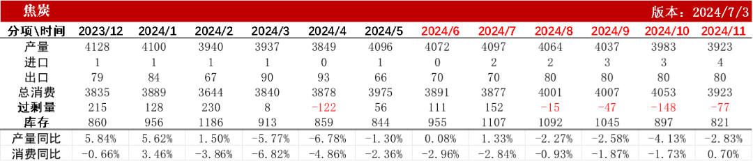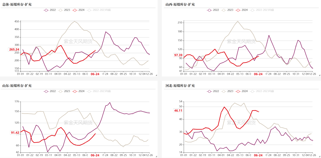 库存:中性偏空下游焦钢对原料煤还是按需采购为主,煤矿累库但库存压力不大,下游焦钢库存不缺。