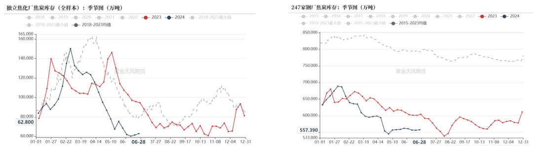 需求:中性焦企开工高位稳定,铁水或阶段性见顶,整体需求端环比驱动不大。