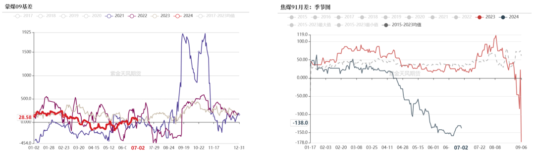 焦煤近期盘面反弹,已进入升水区间,现实压力仍较大,9-1可能将继续走反套。