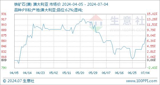 7月4日生意社铁矿石(澳)基准价为853.33元/吨