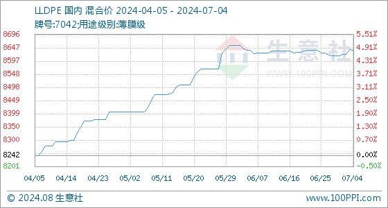 7月4日生意社LLDPE基准价为8641.43元/吨