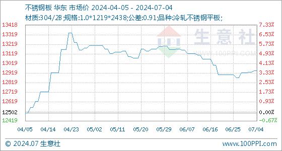 7月4日生意社不锈钢板基准价为12942.86元/吨