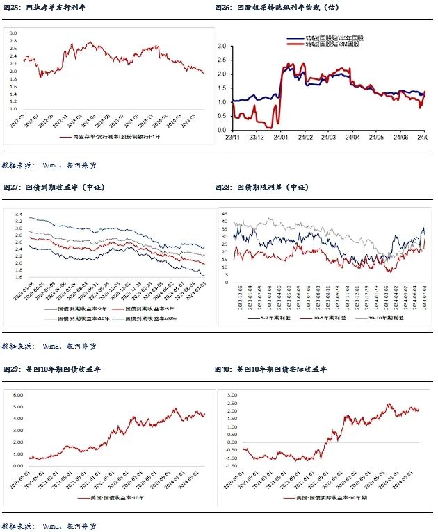 国债期货:周三国债期货集体收涨,30年期主力合约涨0.29%,10年期主力合约涨0.15%,5年期主力合约涨0.1%,2年期主力合约涨0.02%。现券方面,银行间主要期限利率债收益率多数回落,其中5-7年期收益率降幅依旧相对较大。银行间资金面,DR001加权利率1.6920%,-1.48bp;DR007加权利率1.7894%,-0.11bp。