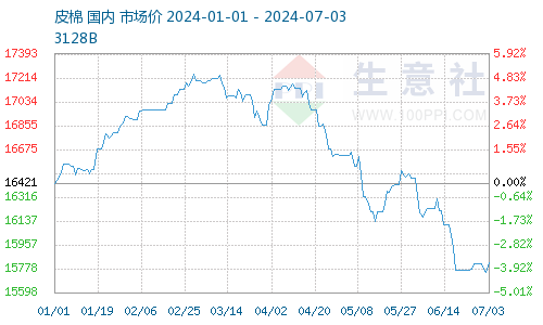 7月4日中国棉花指数3128B级均价15792元/吨,与上一交易日下跌47元/吨。