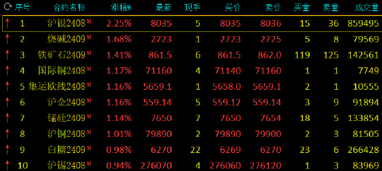 期货午评:沪银涨超2%,铁矿、集运欧线、沪金、锰硅、沪铜涨超1%,菜粕跌近2%;关注黄金本轮上冲力度