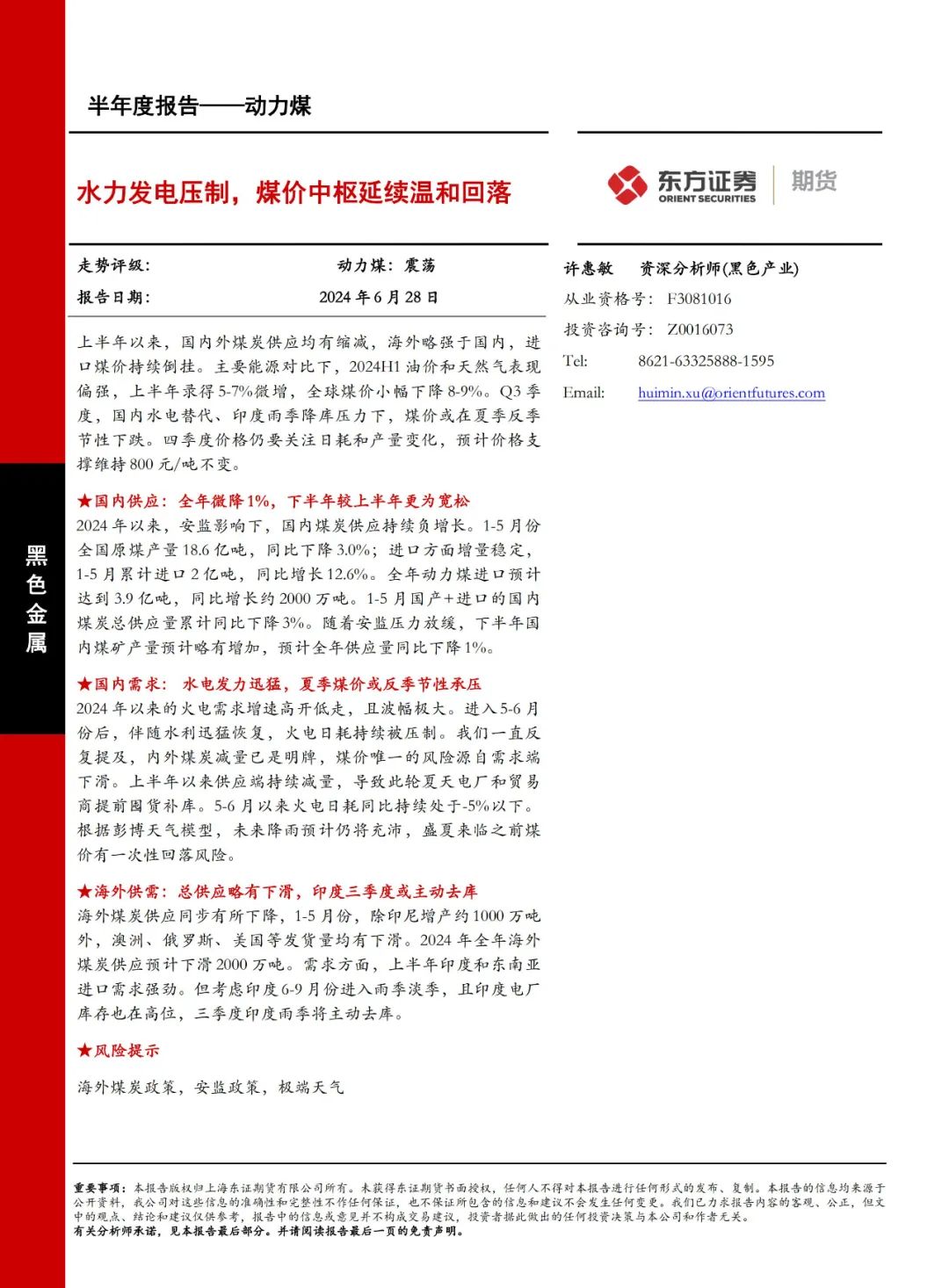 动力煤:水力发电压制,煤价中枢延续温和回落
