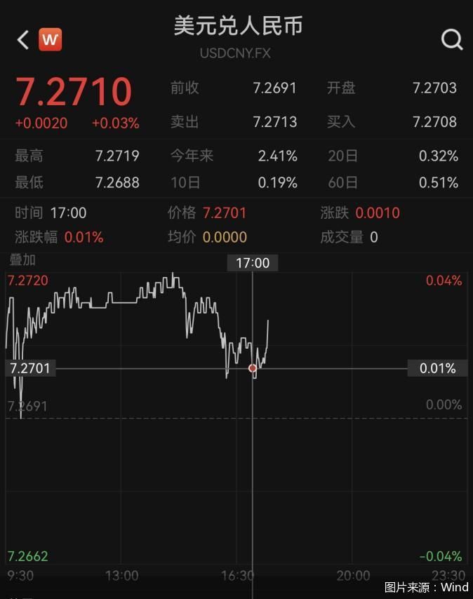 同日,在岸人民币对美元汇率低开12基点,日内开盘价为7.2703;离岸人民币对美元汇率小幅高开3基点,日内开盘价为7.3028。截至7月4日17时,在岸人民币对美元汇率报7.2701,离岸人民币对美元汇率报7.2938。