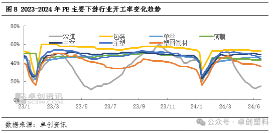 2024年上半年下游开工先增后降,整体开工不及去年同期。春节假期下游各行业多停工放假,随着2月底工厂复产复工,下游开工普遍提升。二季度进入传统需求淡季,订单跟进不畅情况下,终端工厂开工采购力度不强,多消化成品库存,按单生产为主。不同下游行业开工呈现不同程度下滑。