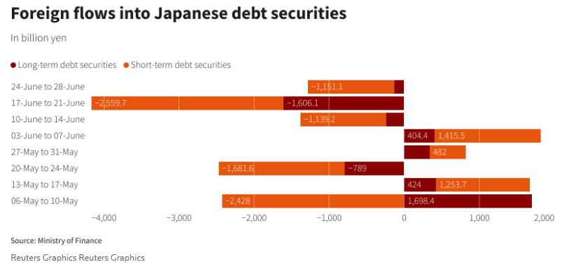 不过,日本财务省的数据显示,海外投资者从日本长期债券中撤出约1,309亿日元,连续第三周出现净抛售。