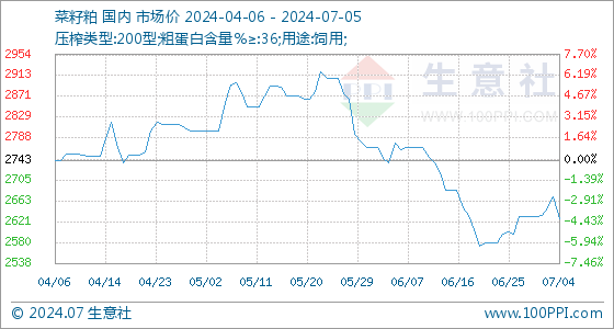 7月5日生意社菜籽粕基准价为2626.67元/吨