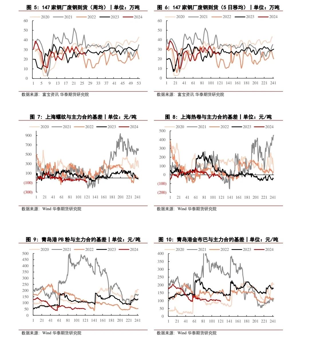整体来看,近期宏观氛围转暖,市场情绪呈现偏乐观态势。供应端,全球发运量、到港量整体维持较高水平。需求端,鉴于当前高铁水产量持续及钢厂库存维持在较低水平,铁矿石的刚性需求尚可。然而,值得注意的是,当前仍处于需求传统淡季,加之钢厂利润空间压缩,限制了高炉进一步复产的空间,故整体复苏步伐或显谨慎。未来需要关注宏观政策变化、淡季需求变化、全球发运动态、钢厂去库速度对价格的影响。短期内,铁矿石期货价格将继续呈现震荡格局。