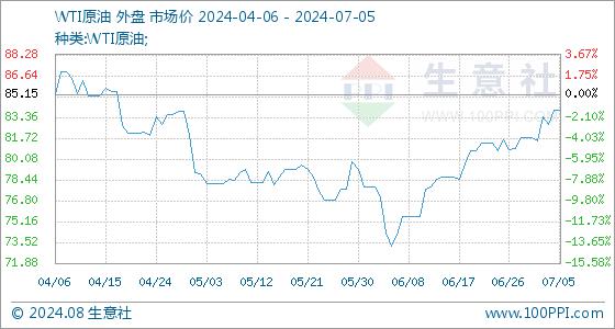 7月5日生意社WTI原油基准价为83.88美元/桶