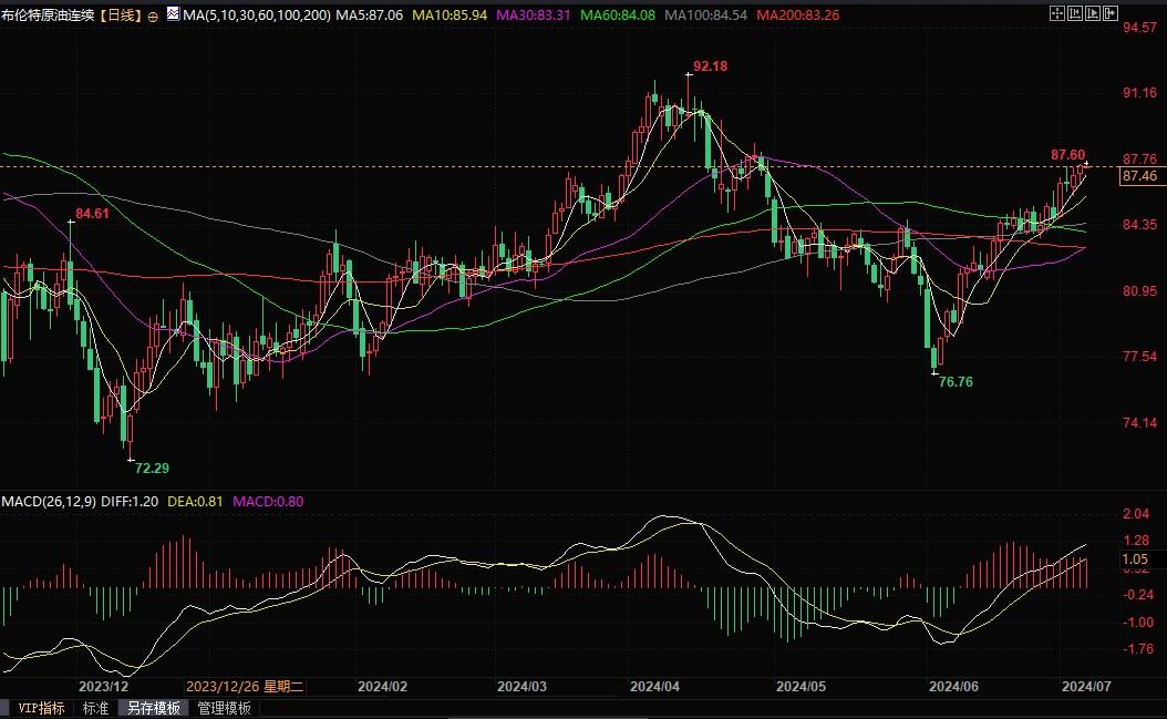 北京时间7月5日9:30,布伦特原油价格报87.45美元/桶