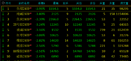 期货午评:焦煤、纯碱跌近4%,焦炭、玻璃跌超3%,橡胶跌3%,沪铅燃油涨1%;四季度纯碱价格或创年内新低