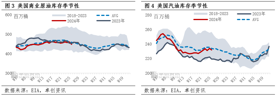 从季节性规律来看,6月下旬到9月期间,美国原油和汽油库存往往会持续下降。本周EIA报告数据符合季节性预期,而且商业原油单周降库幅度为今年最大,为市场关注的夏季消费旺季预期添加佐证。此外,本周也是美国独立日假期,美国汽车协会AAA预计7月4日之前,美国汽油平均价格为每加仑3.51美元,比上周上涨了约2美分,预计将有创纪录的约6000万美国人在假期出游。