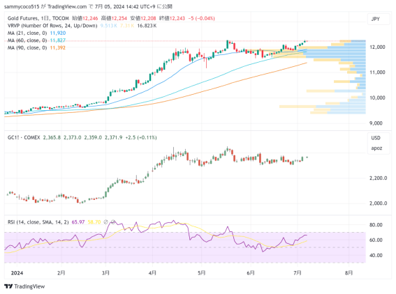 东京市场方面,虽然美元兑日元汇率维持161日元以上水平,加上NY黄金价格企稳,帮助东京主力合约来到来到12200日元一线水平收盘。