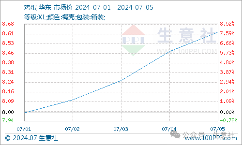 近期国内鸡蛋市场价格整体走高。产区高温以及鸡病降低产蛋率,一定程度上缓解鸡蛋供应压力;而库存不高,随着情绪好转,产业补库,且南方局部暴雨居民备货增加,鸡蛋走货加快,部分地区缺货;另外,蛋商存冷库意愿增加,也起到一定支撑作用。短期鸡蛋行情预期乐观。