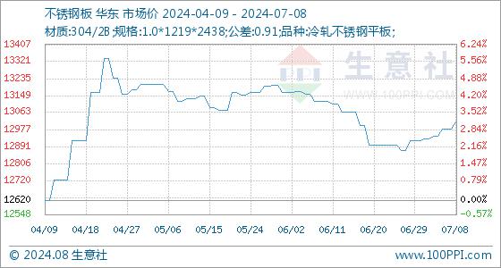 7月8日生意社不锈钢板基准价为12978.57元/吨