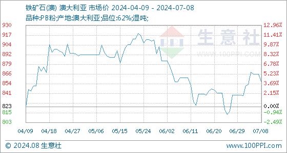 7月8日生意社铁矿石(澳)基准价为866.22元/吨