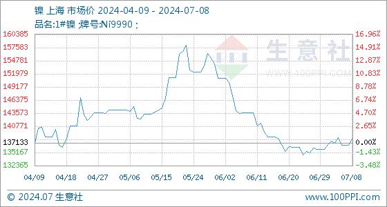 7月8日,生意社镍基准价为136683.33元/吨,与本月初(135900.00元/吨)相比,上涨了0.58%。