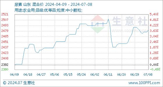 7月8日,生意社尿素基准价为2477.00元/吨,与本月初(2489.00元/吨)相比,下降了-0.48%。