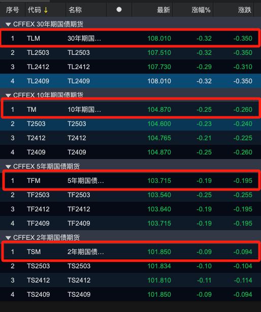 期货方面,截至7月8日上午收盘,两年期价格下跌0.09%,五年期价格下跌0.19%,十年期价格下跌0.25%,三十年期价格下跌0.32%。