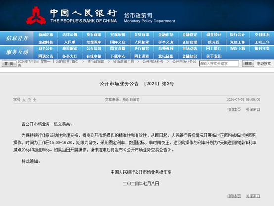 央行于7月8日发布重磅公告,宣布将从即日起视情况开展临时正回购或临时逆回购操作,这一举措被视为央行流动性调控的新利器。央行表示,此举旨在保持银行体系流动性合理充裕,提高公开市场操作的精准性和有效性。这一决定引发了金融市场的广泛关注。