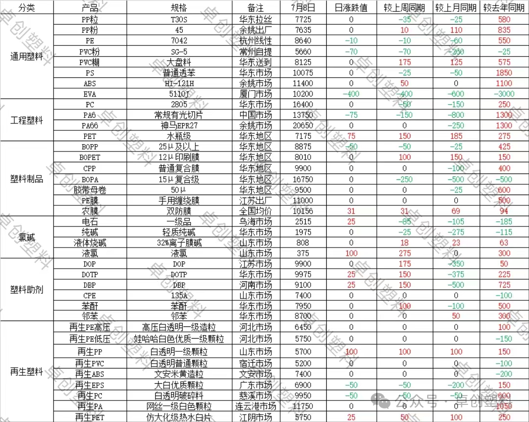 备注:以上表中所取价格为各产品代表市场或是代表区域价格,更多市场价格及详情内容请关注卓创资讯各产品网站或手机客户端。