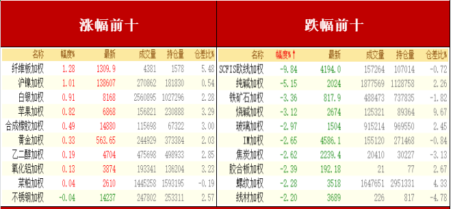 能化品多数下跌,近期纯碱进入夏季检修旺季,但4月碱厂超预期检修可能产生后遗症,就是部分企业已经提前检修了,按目前的检修计划,检修装置数量将远远少于往年。在纯碱需求走弱的情况下,未来库存可能会进一步大幅累库,推动纯碱价格继续下跌,纯碱跌逾5%,烧碱、玻璃跌逾3%;