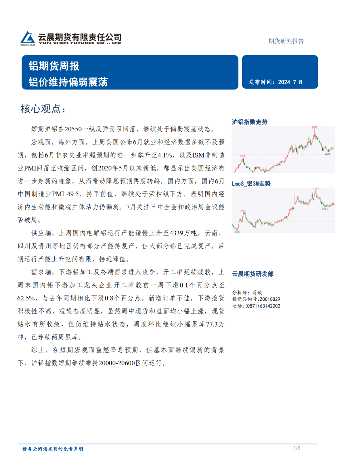 综上,在短期宏观面重燃降息预期,但基本面继续偏弱的背景下,沪铝指数短期继续维持20000-20600区间运行。
