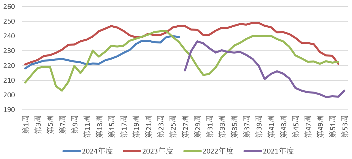 根据钢联数据,本周螺纹钢高炉利润平均亏损-232.46元/吨,前值-184.27元/吨,本周铁水产量239.44万吨,前值239.94万吨,产量减少0.5万吨,环比减少0.21%,铁水产量微幅下降。
