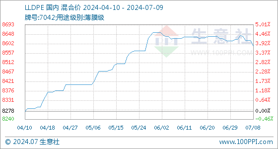 7月9日生意社LLDPE基准价为8591.43元/吨