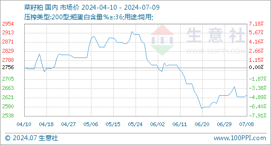 7月9日生意社菜籽粕基准价为2635.00元/吨