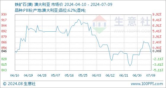 7月9日生意社铁矿石(澳)基准价为856.78元/吨