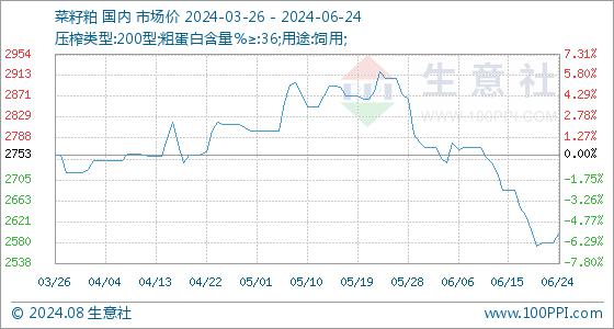 6月24日生意社菜籽粕基准价为2578.33元/吨