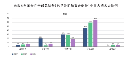 | 未来5年黄金在全球总储备(包括外汇和黄金储备)中将占据多大比例 |