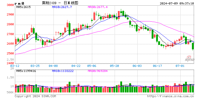 近期,美豆及美豆粕走势不佳,美豆主力合约今日再度走弱,创2020年12月以来新低;美豆粕主力合约一度触及320.6美元/短吨,为2021年11月至今最低水平。CBOT大豆及豆粕的接连走弱,带动国内蛋白粕期货同步回落。周二,国内菜粕主力合约2409日内跌幅一度逼近4%,回落至3月低位。综合来看,美豆生长好于预期推动CBOT大豆大幅回落,带动国内粕类期货走弱,在供给存上行预期背景下,菜粕短期或难改弱势。值得注意的是,当前正处于美豆生长关键期,需关注天气因素炒作对盘面造成的冲击。(光大期货)