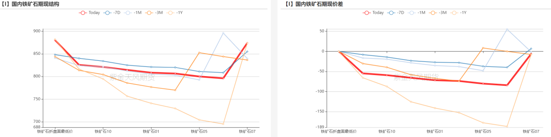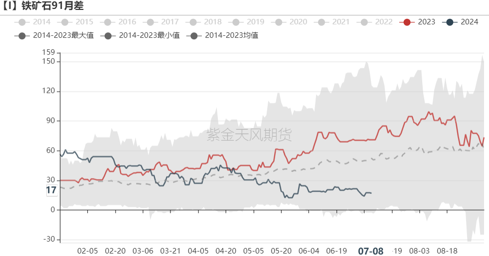 现货铁矿现货成交量上行,09合约基差率3.8%左右,基差环比走扩,基差率上行。