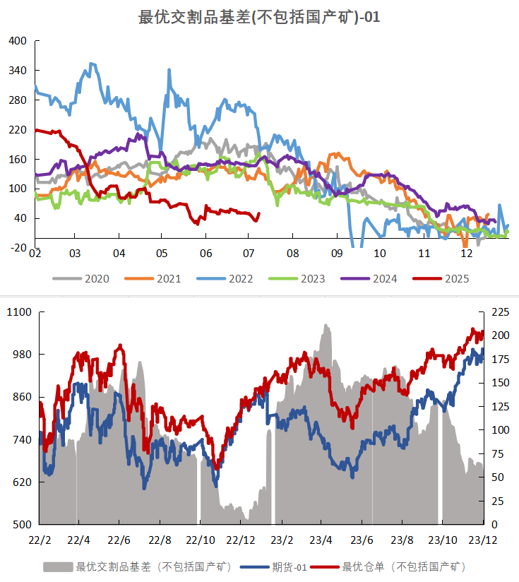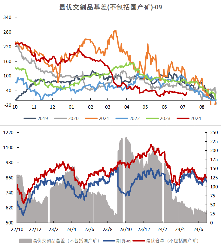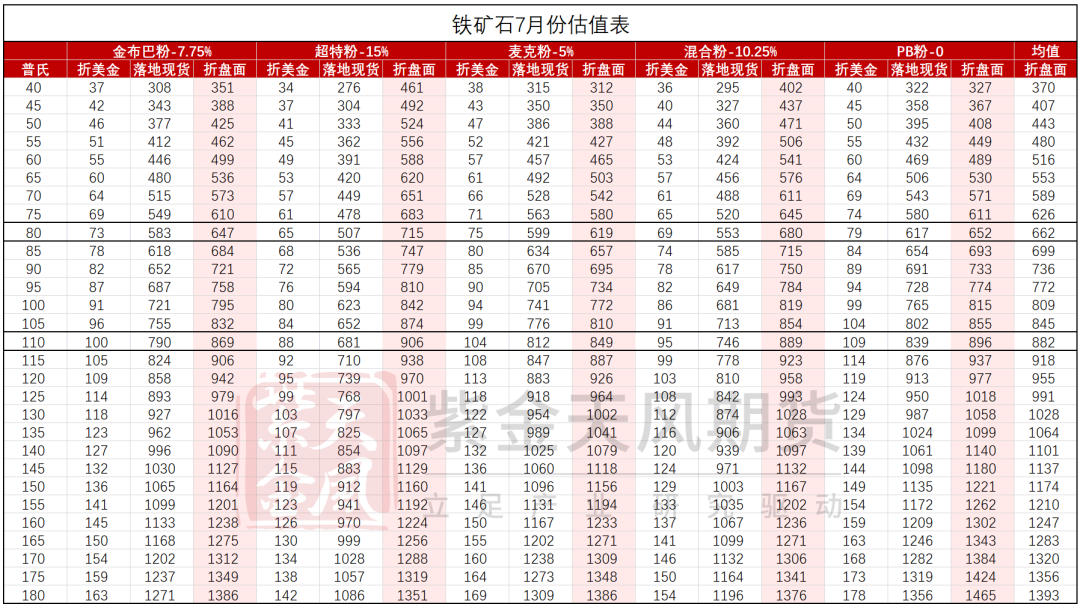 折扣&汇率7月普氏62指数均值为110,对应盘面估值约为849。