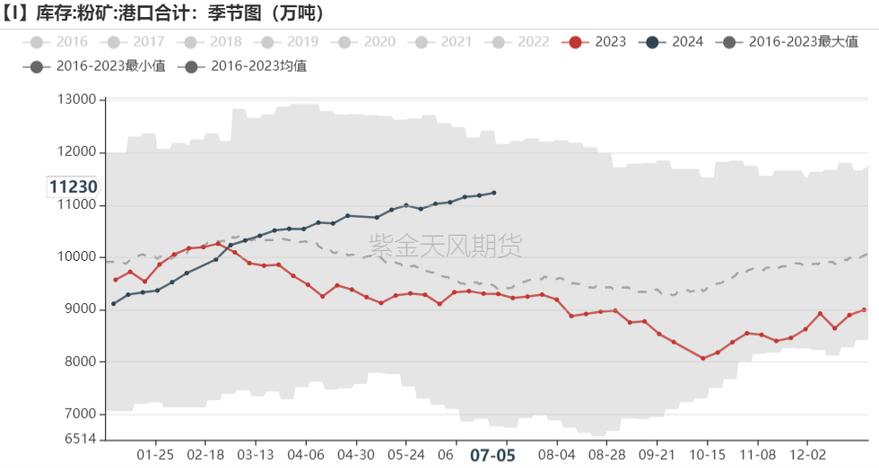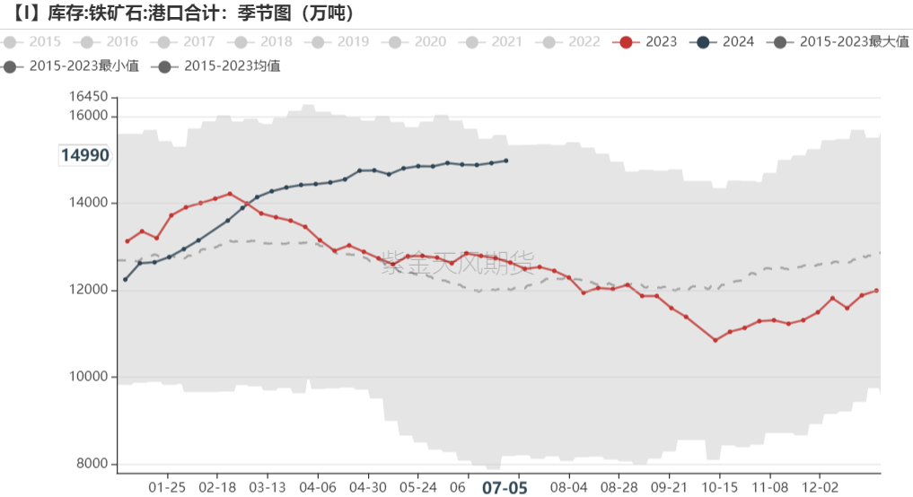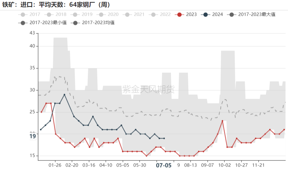 钢厂:钢厂进口矿总库存增73万吨,厂库减51万吨,海漂+港口增124万吨;进口矿可用天数19天环比持平