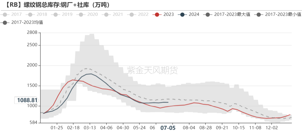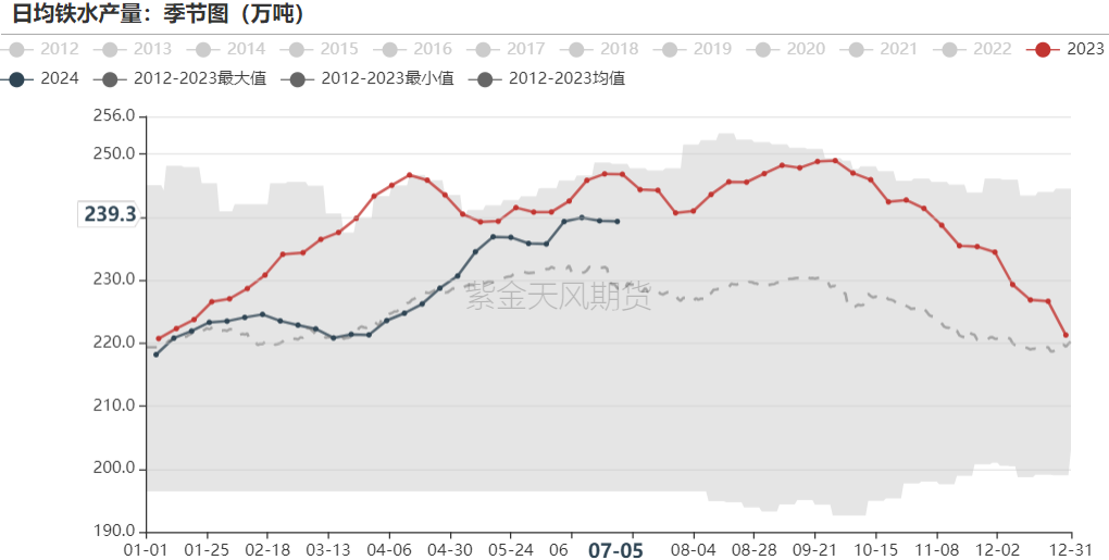铁水本周钢联公布247样本铁水产量239.32万吨,环比-0.5万吨,6月日均铁水238.6万吨。