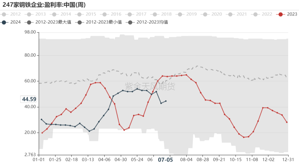 钢厂:钢厂盈利率上行;铁水239.32万吨,环比-0.12万吨