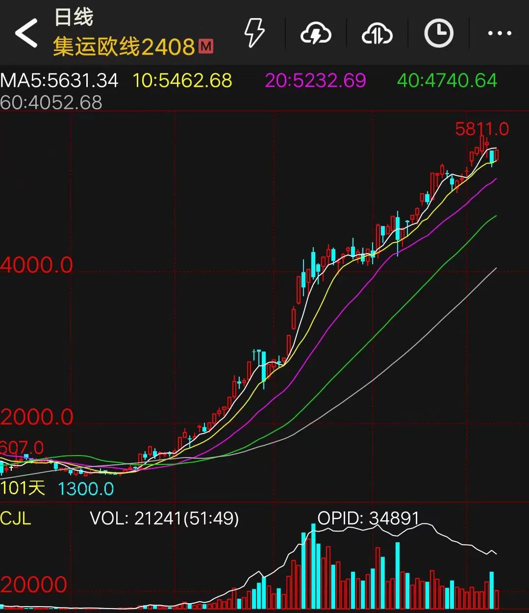 “目前现货运价处于逐渐筑顶的过程中,但拐点尚未出现,短期现货运价依旧受旺季货量的支撑,但是增速将放缓,等待现货运价方向进一步明朗,而远月合约受地缘政治冲突情绪影响更大,仍面临较大的回调压力。”贾瑞林表示。