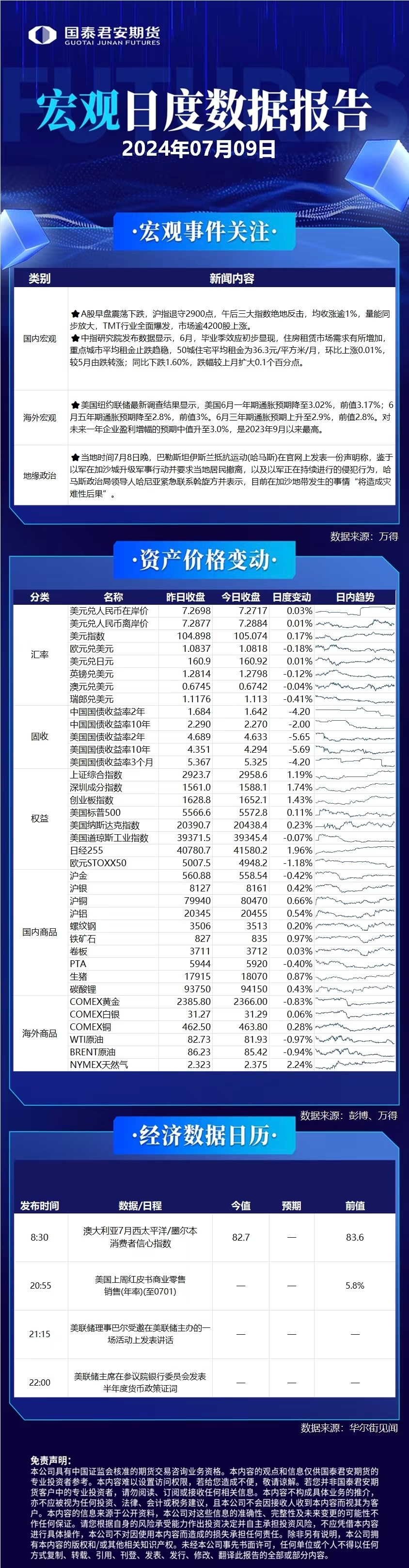 今日重点关注:原油、镍、生猪。鲍威尔首日国会听证措辞谨慎,但为9月可能降息奠定基础