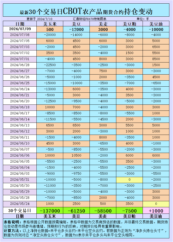 汇通财经APP讯——在全球农产品市场中,芝加哥商品交易所(CBOT)的持仓变动一直是投资者关注的焦点。它不仅反映了市场情绪,更是预测未来价格走势的重要指标。最近,CBOT的持仓变动显示,大宗商品基金在玉米、大豆、小麦、豆粕和豆油的投机性净多头和净空头持仓上均有所调整,这些变动为我们提供了市场情绪的宝贵线索。