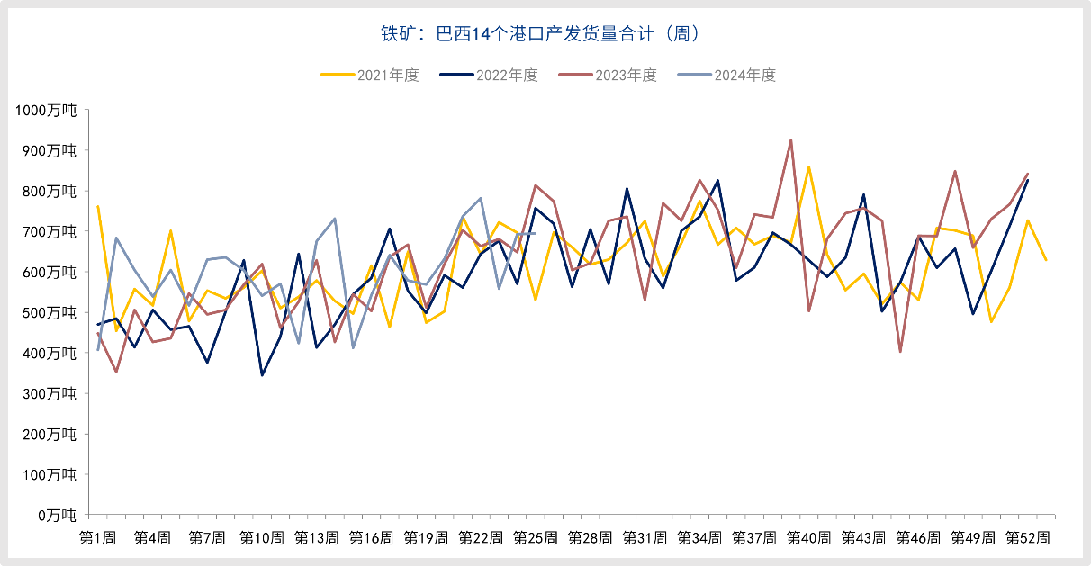 从供给端来看,据mysteel数据,本周澳洲发中国1619.1万吨,环比减少56.6万吨;巴西发中国912.4万吨,环比增加217.9万吨。发运总量大幅上升。