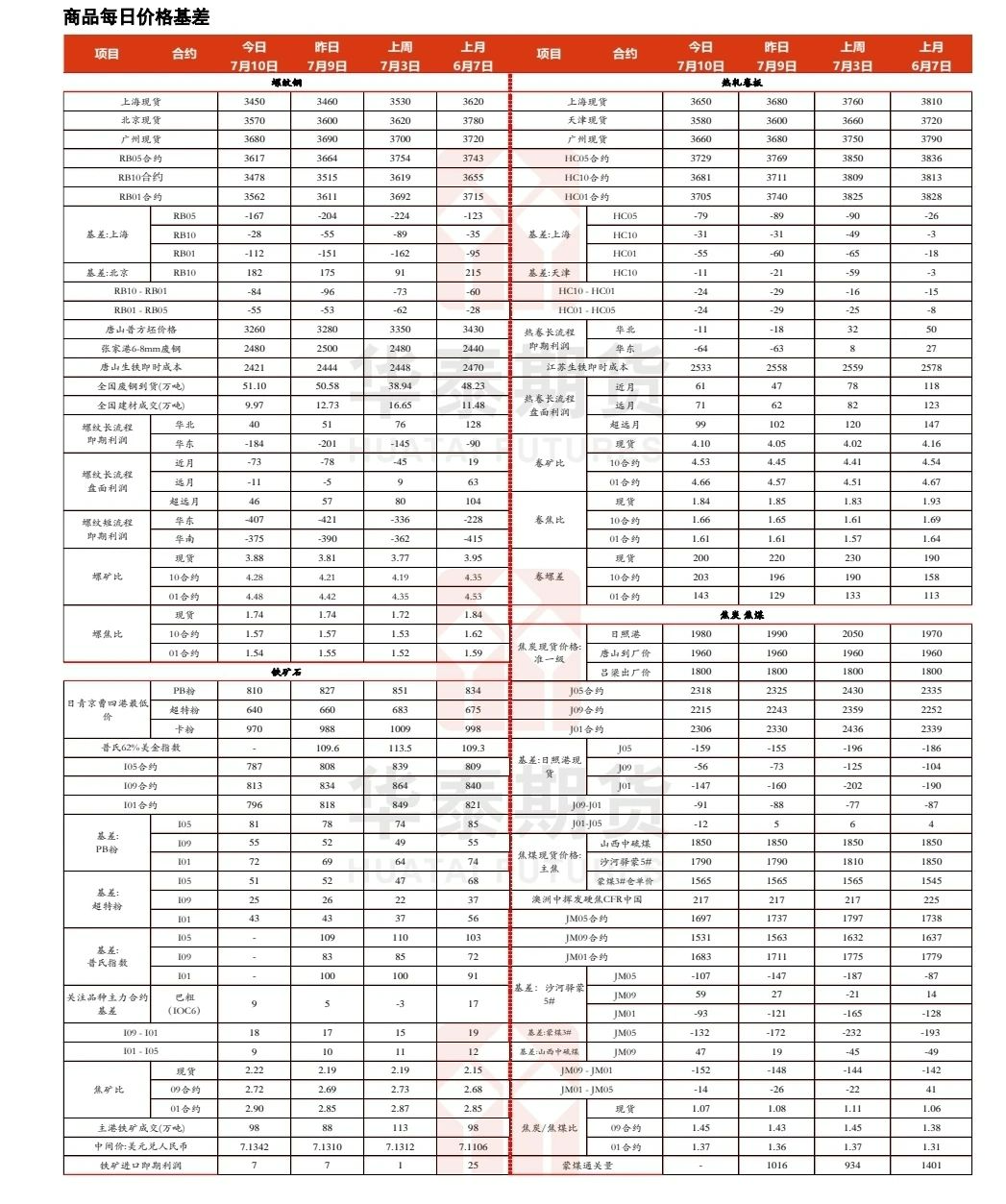 综合来看:宏观暂无利好刺激,建材产销均有回落,整体呈现供需双弱的局面,铁水产量维持高位,建材板材库存压力显现。但目前板材出口维持高位,下游消费韧性犹存。后期继续关注地产政策落地后地产数据变化,以及三季度地方债对基建的改善程度,跟踪淡季消费韧性和库存变化情况,短期预计建材价格仍将维持震荡格局。